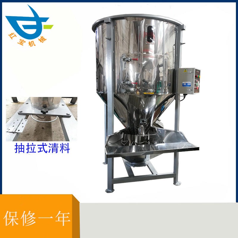 是利用螺桿的快速旋轉將原料從桶體底部由中心提升至頂端,再以傘狀飛拋散落,回至底部,這樣原料在桶內上下翻滾攪拌,短時間內即可將大量原料均勻的混合完畢。
